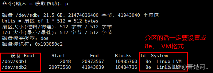 (3)对硬盘sdb进行分区,并且把分区类型的ID标记号改为“8e”