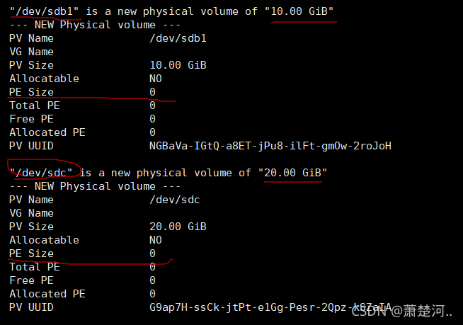(4)PE(物理块):PE是物理卷PV的基本划分单元,具有唯一编号的PE是可以被LVM寻址的最小单元。PE的大小是可配置的,默认为4MB。所以物理卷(PV)由大小等同的基本单元PE组成;
