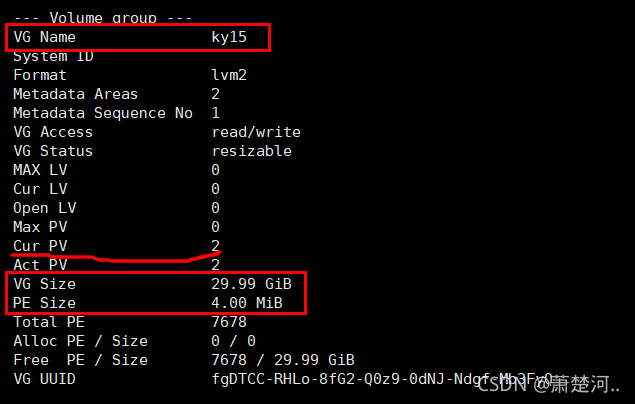 (2)VG(卷组):由一个或多个物理卷组成一个整体,即称为卷组,在卷组中可以动态地添加或移除物理卷;