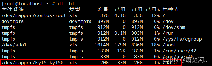 xfs_growfs /dev/ky15/ky1501 //刷新xfs文件系统