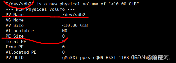 (8)进行卷组和逻辑卷扩容:因为还有sdb2分区未创建物理卷;