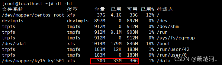 [root@localhost ~]# df -hT //查看文件挂载情况