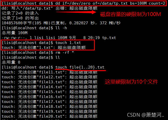 bhard:设置磁盘容量的硬限制数值(默认单位为KB)