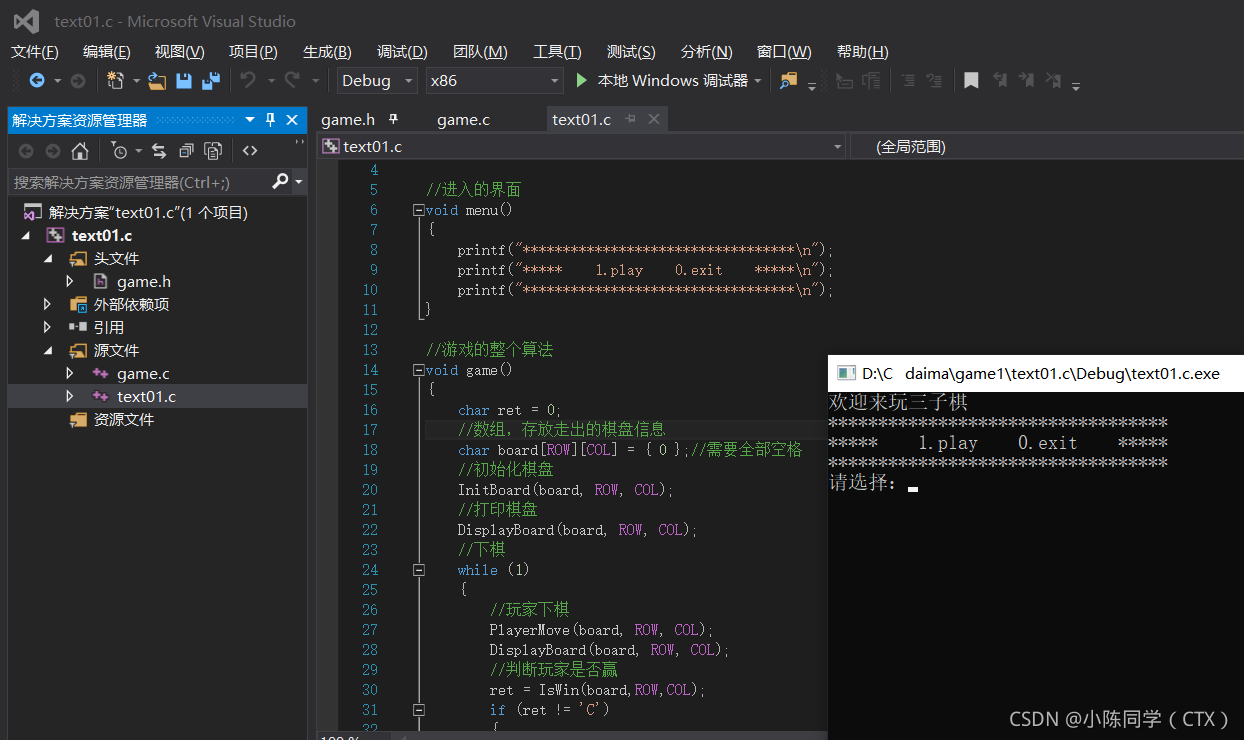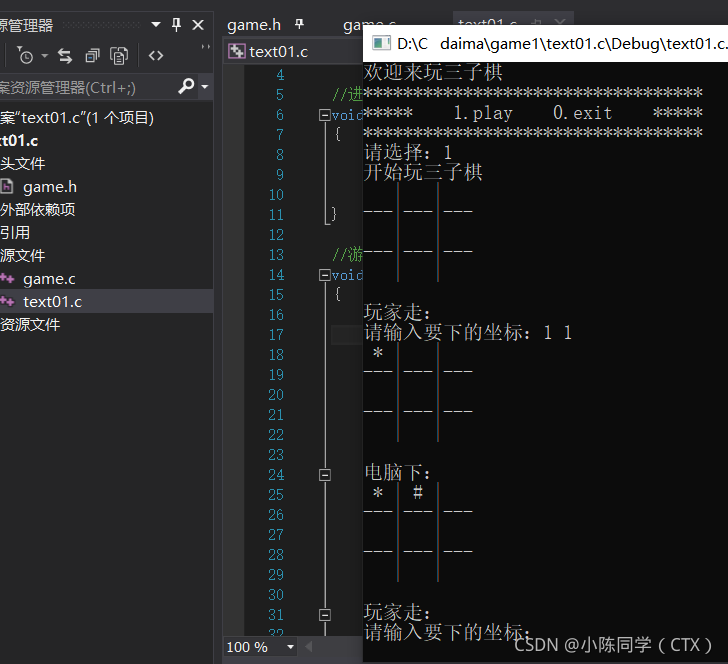 用PlayerMove(board, ROW, COL);函数实现玩家下棋: