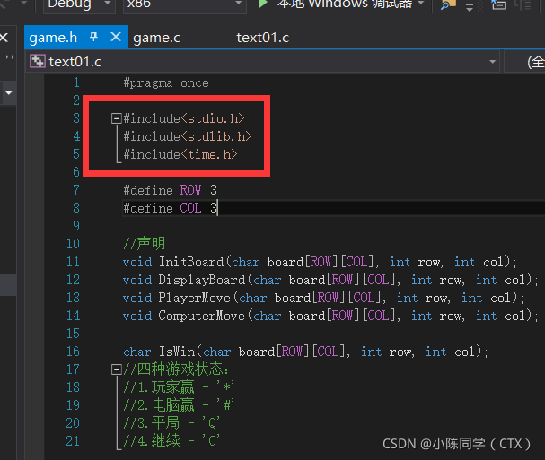 3.对于一些数值,可以在头文件中定义,其它地方因为调用了头文件则可以访问,也方便后期修改:
