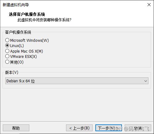 因此在新建UOS和中科方德系统的虚拟机的时候要注意操作系统类型要选择Debian;建议选择Debian9.x 64位,选择Debian10.x的时候会出问题。