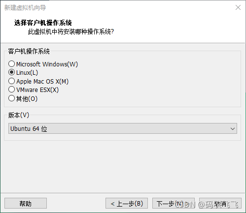 银河麒麟是基于Ubuntu系统的,建立对应的虚拟机的时候需要选择Ubuntux64对应的操作系统版本