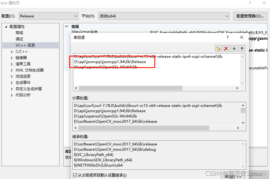 8)链接器->输入->附加依赖项,添加jsoncpp.lib。