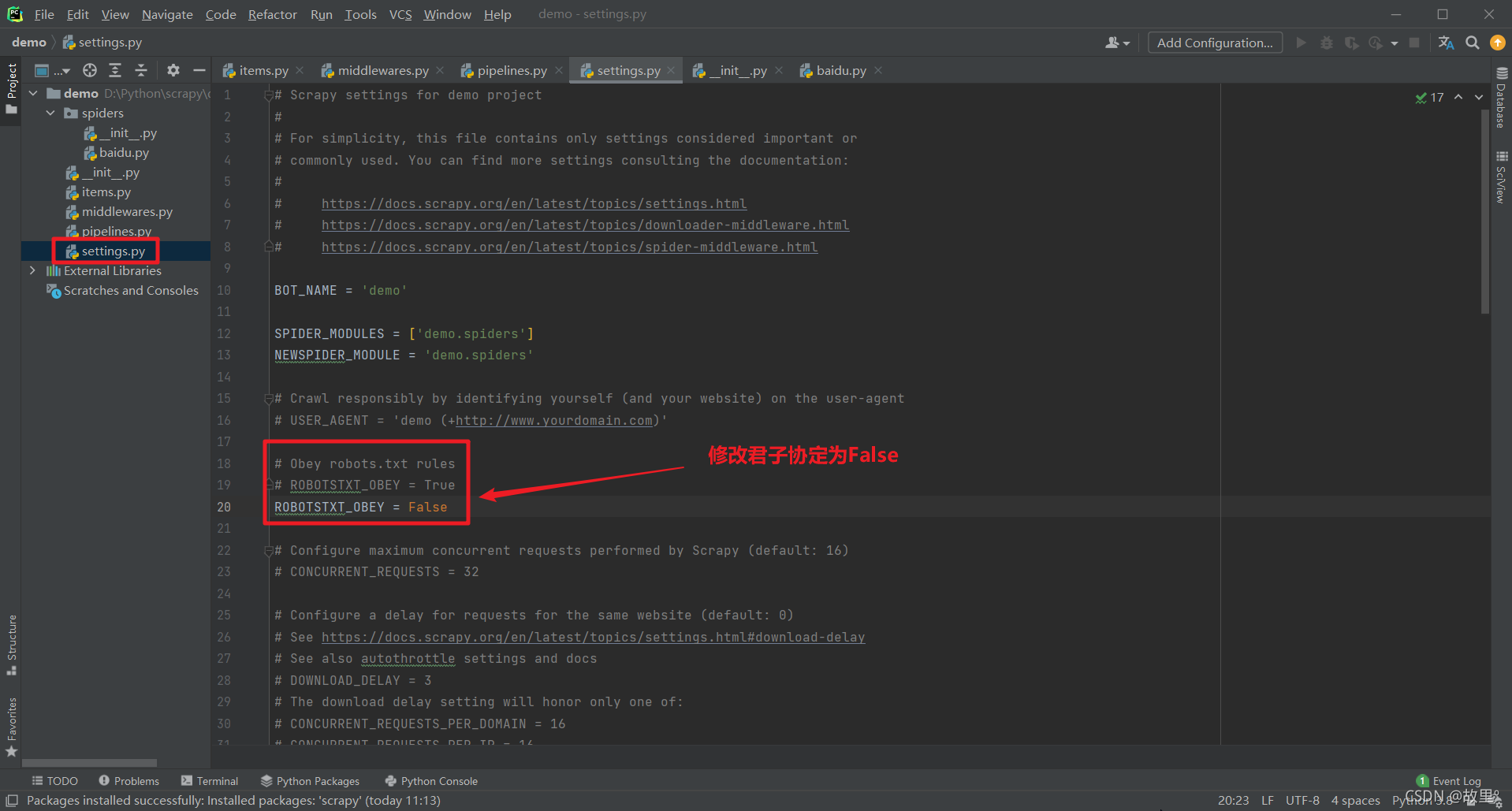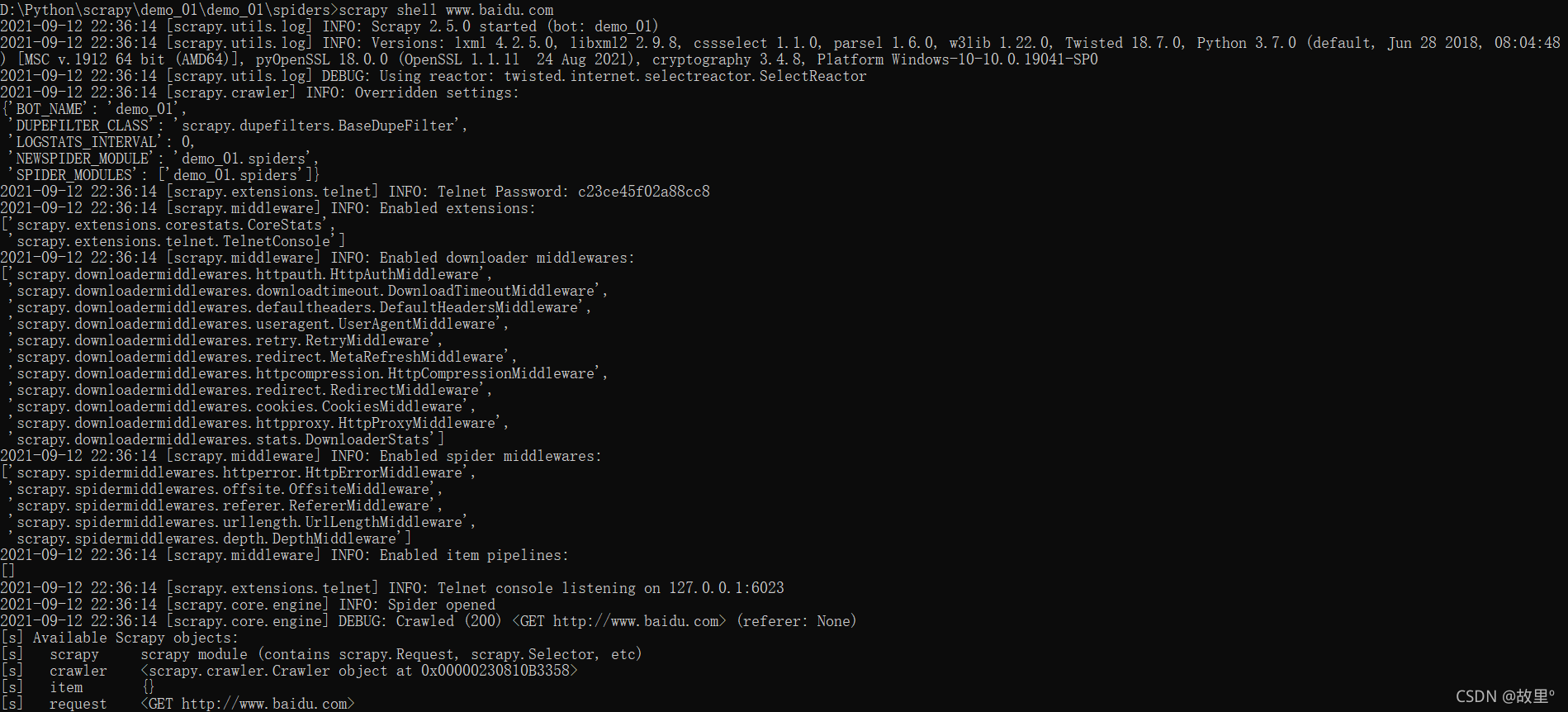 Scrapy终端,是一个交互终端,可以在未启动Spider的情况下尝试及调试爬虫代码。其本意是用来测试和提取数据的代码,不过可以被作为正常的Python终端,在上面测试任何的Python代码。