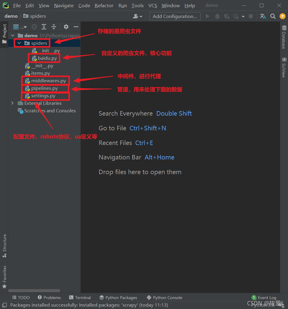 scrapy genspider 爬虫文件的名字 要爬取的网页