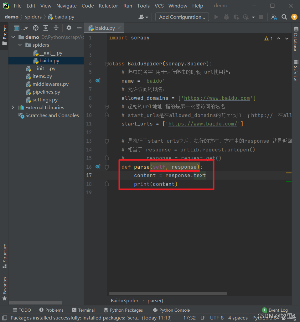 # 是执行了start_urls之后,执行的方法,方法中的response 就是返回的那个对象