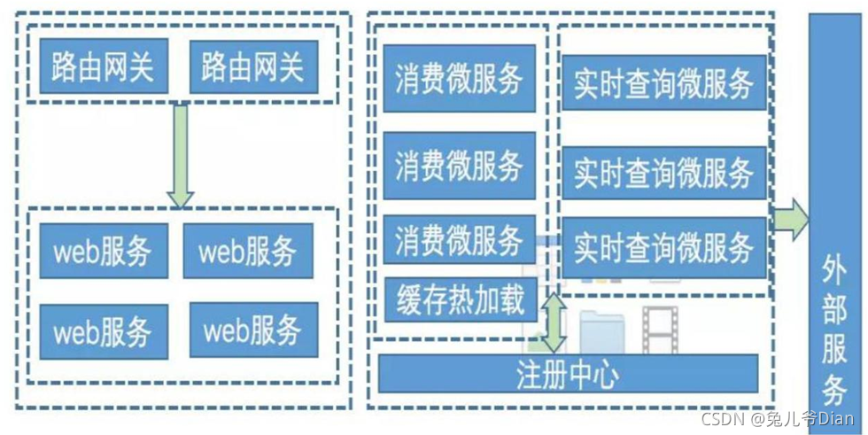 1、路由网关-流量分发入口,不承载具体业务,简单点可以使用 nginx,如果是微服务可以使用 zuul 等(支持请求的分发、限流、下游依赖的发现,可以结合 docker 实现服务下游的web 服务自动伸缩),如果采用 nginx 完成不了下游的伸缩发现,但是基本的限流和分发可以解决