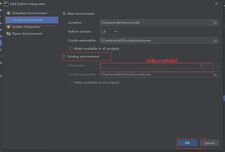 - 如何建好的虚拟环境的解释器找出来指派给代码?