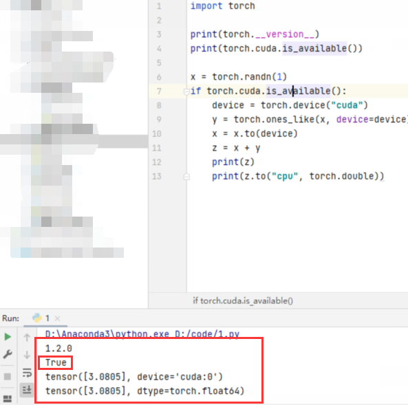 pycharm中运行以下代码测试,若出现以下结果,说明环境搭建完成。
