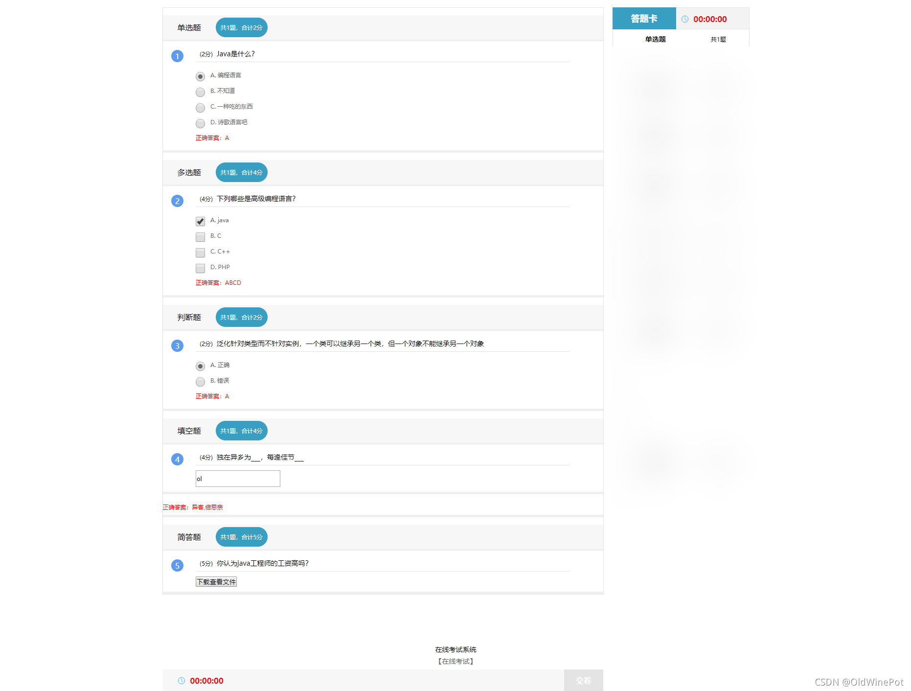 试题管理增加了简答题和填空题,(简答题和填空题不支持模板导入,只能手动添加)