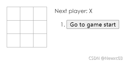 src/文件夹中创建一个名为index.css的文件,并拷贝body { font: 14px "Century Gothic", Futura, sans-serif; margin: 20px; } ol, ul { padding-left: 30px; } .board-row:after { clear: both; content: ""; display: table; } .status { margin-bottom: 10px; } .square { background: #fff; border: 1px solid #999; float: left; font-size: 24px; font-weight: bold; line-height: 34px; height: 34px; margin-right: -1px; margin-top: -1px; padding: 0; text-align: center; width: 34px; } .square:focus { outline: none; } .kbd-navigation .square:focus { background: #ddd; } .game { display: flex; flex-direction: row; } .game-info { margin-left: 20px; } - 在