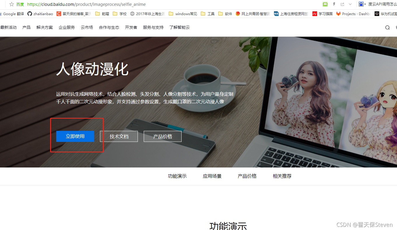 1)登录网站:人像动漫化-百度AI开放平台 。登录百度AI平台。