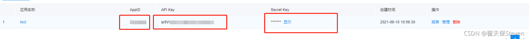 3)复制AppID、API Key、Secret Key,调用接口的密钥。