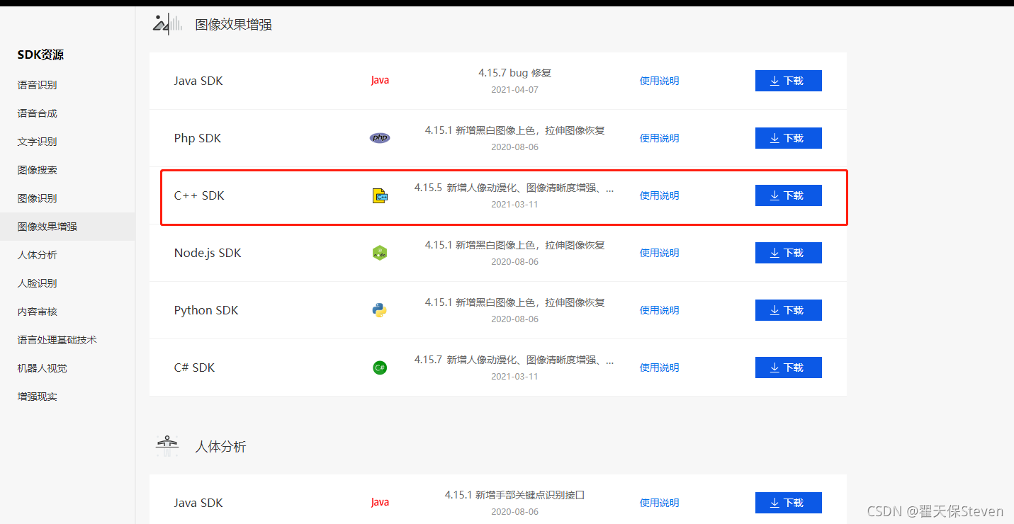4)下载SDK,我用的C++,所以我只介绍C++的相关使用。