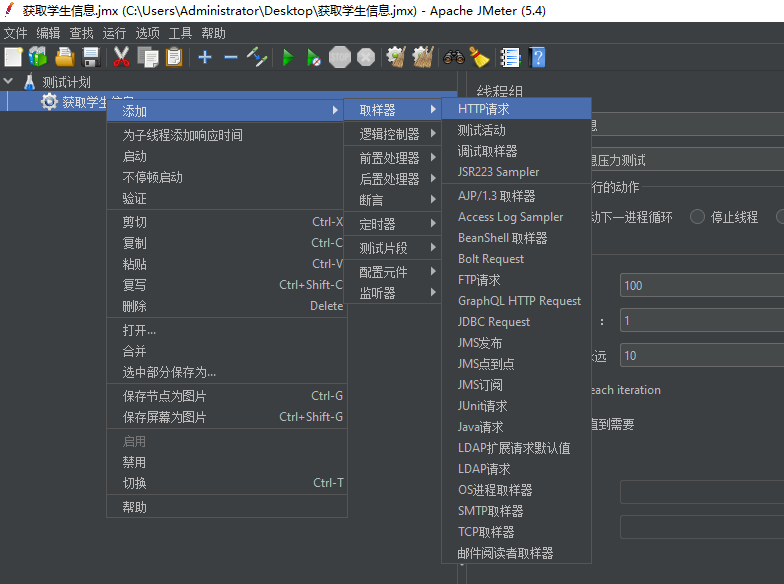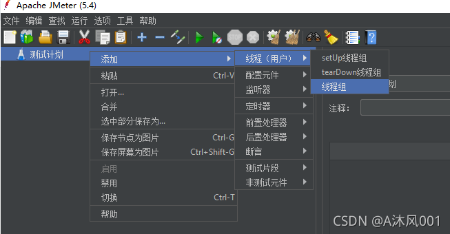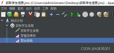 3、监听器里添加查看结果树(比较耗服务器性能,不需要可以不加)和聚合报告