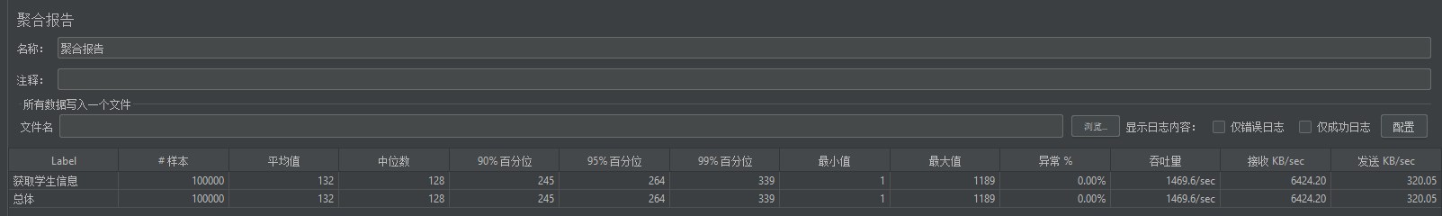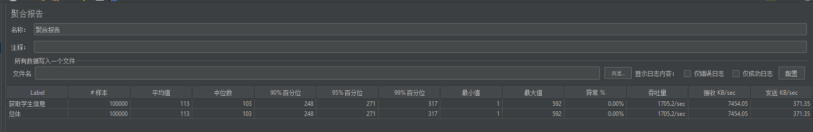 执行完毕后将jtl文件下载到本地,利用GUI工具可以查看压测结果。