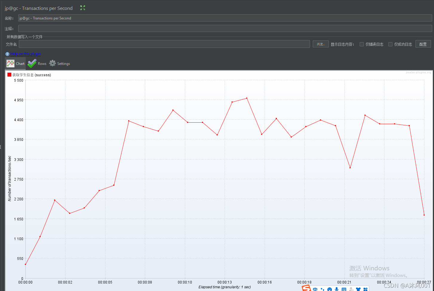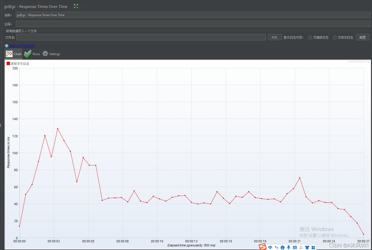 重启后,我们为压测脚本添加监听器可以用来监测接口响应时间和tps的变化情况: