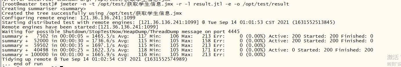 jmeter -n -t /opt/test/获取学生信息.jmx -l result.jtl -e -o /opt/test/result