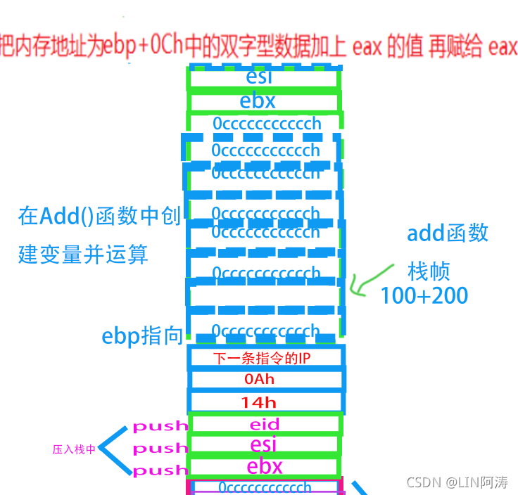 Add函数,开始调用计算计算完成的值赋给eax,此时我们的计算已经完成,接下来调用的值开始返回