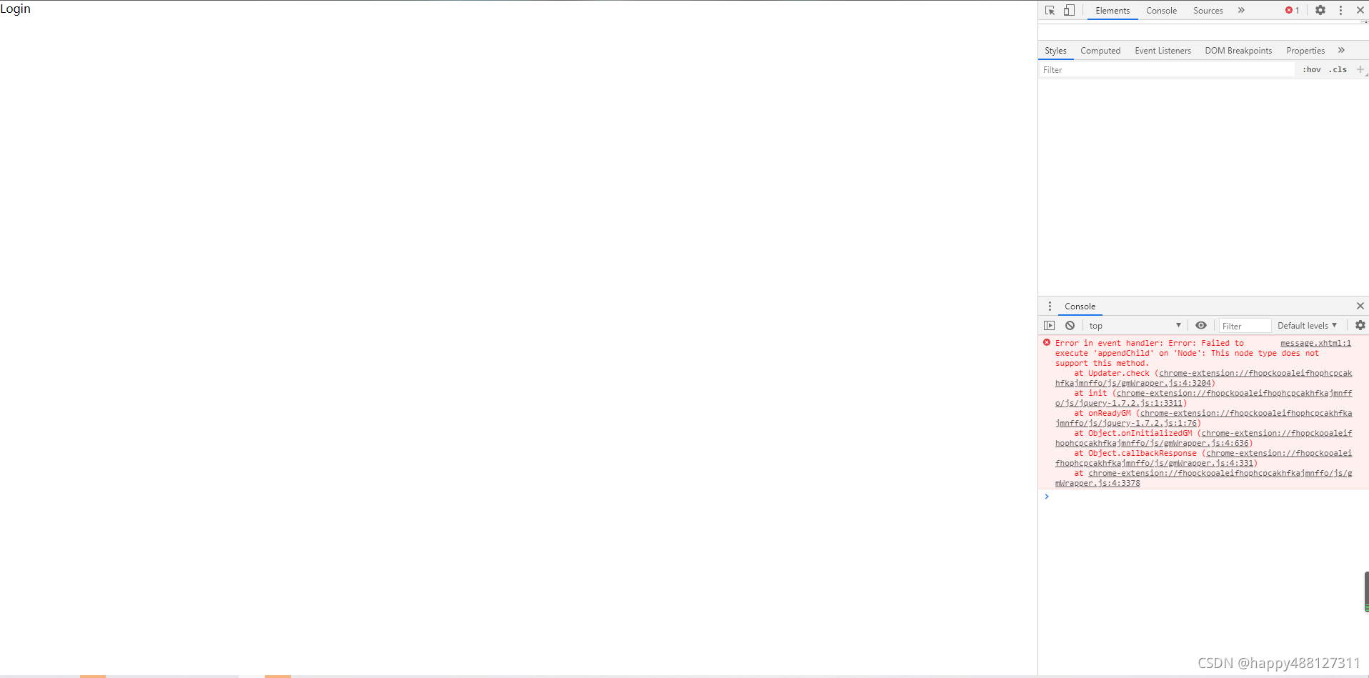 Error in event handler: Error: Failed to execute 'appendChild' on 'Node': This node type does not support this method.