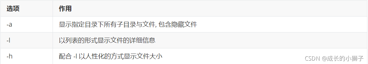 选项: 可用来对命令进行控制, 也可以省略(可以包含多个选项)