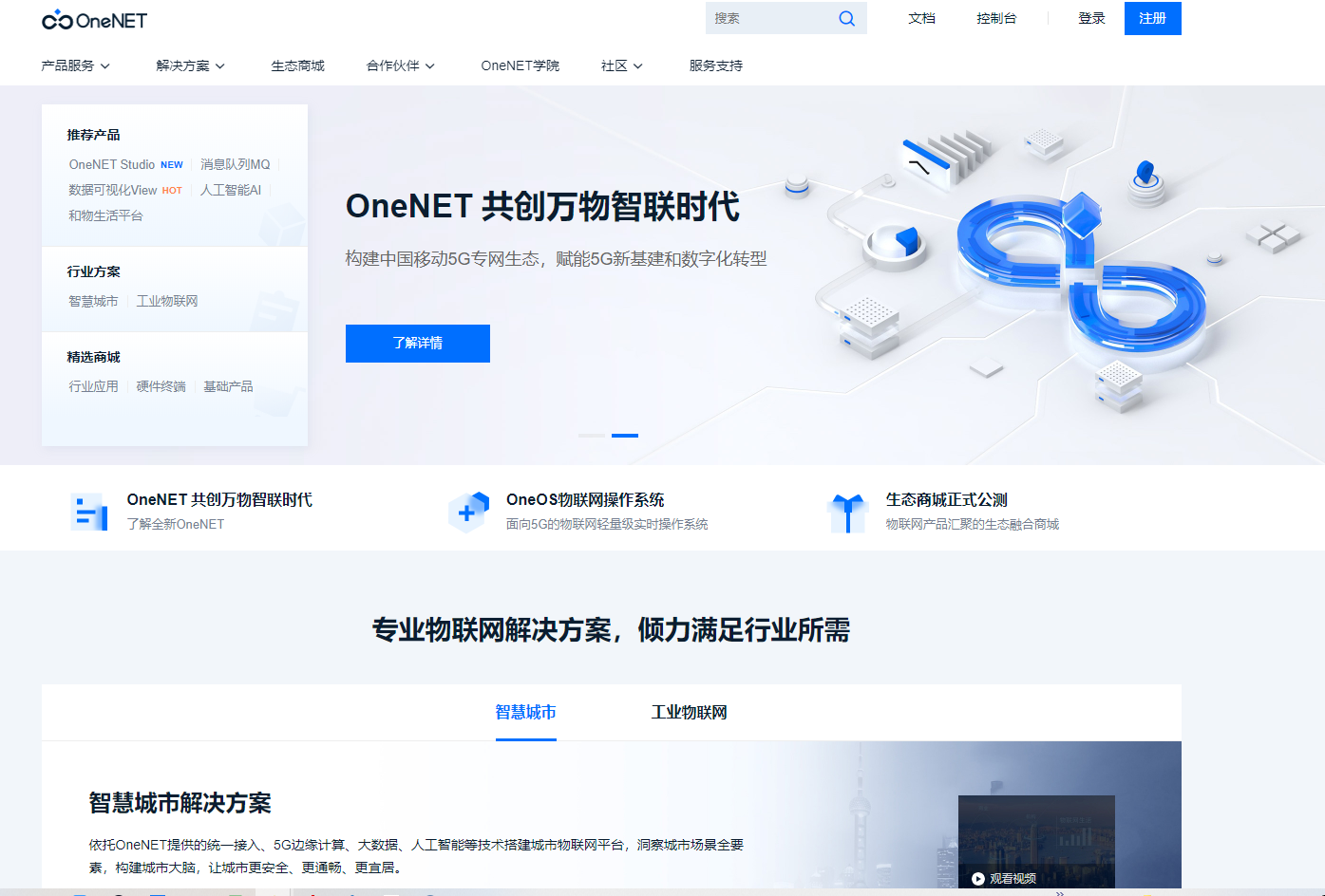 OneNet网址:OneNET - 中国移动物联网开放平台