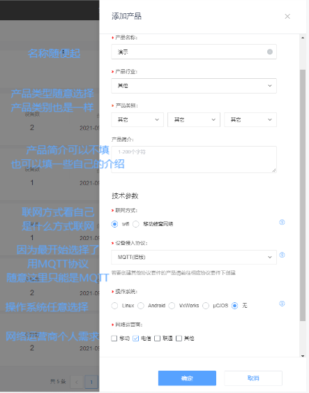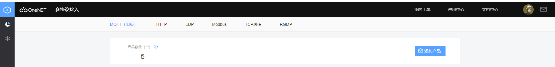 在这里我就用MQTT协议做实例了,点击右侧的添加产品