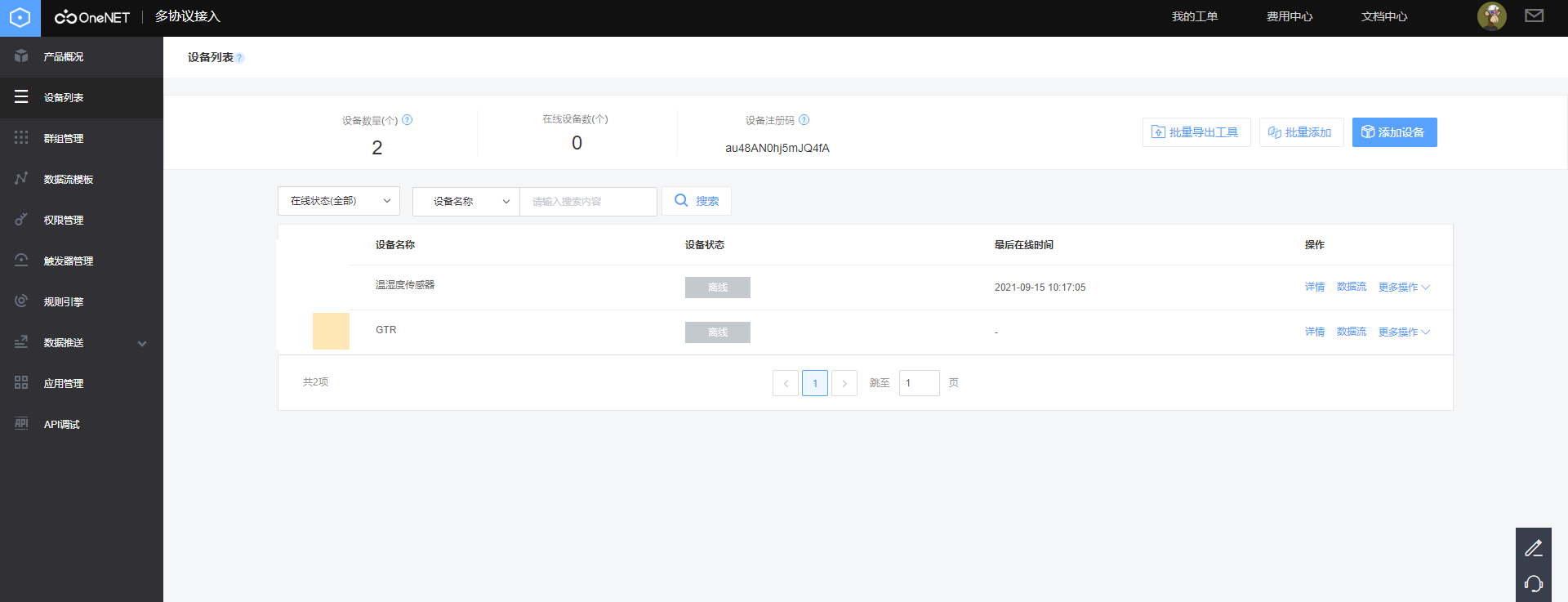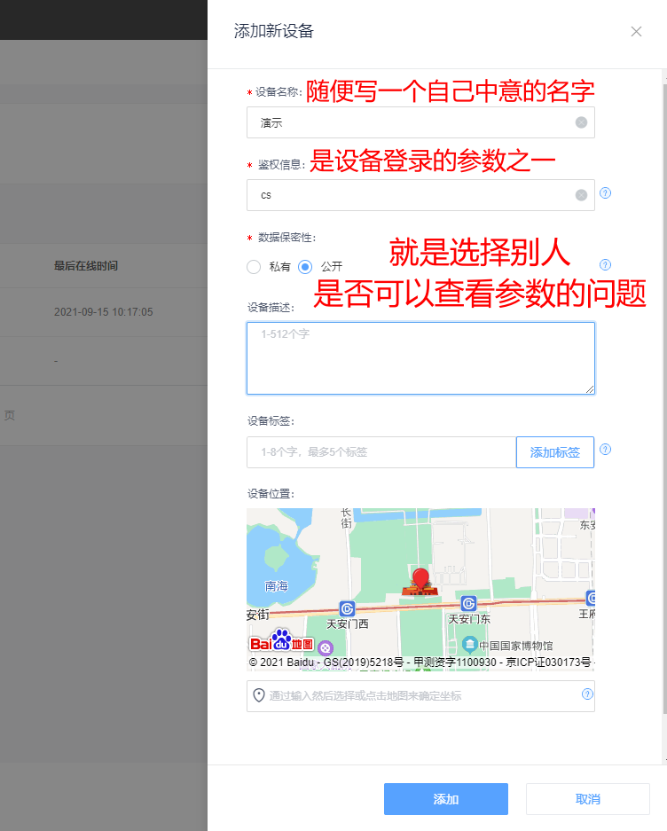 确认无误后点击添加便可以,添加完成后,产品会使处于离线状态