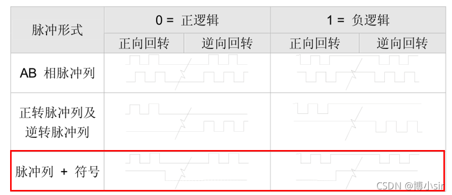 脉冲型伺服电机的控制信号有三种脉冲形式,分别是正反转脉冲、脉冲+方向、AB相脉冲,具体定义如图7所示。