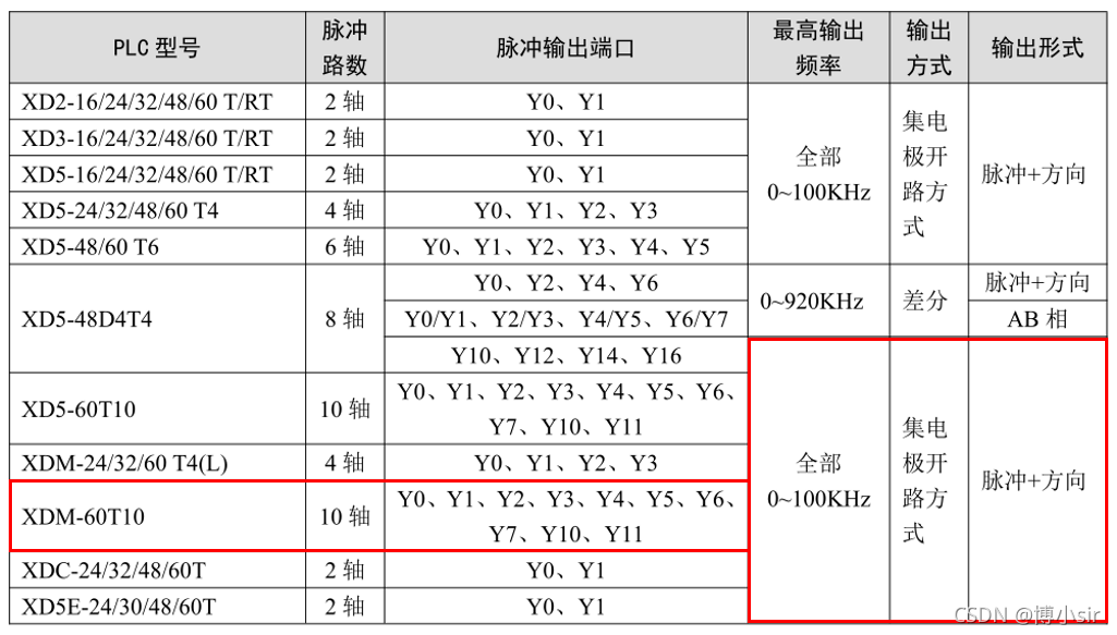 查看信捷的PLC手册,可以找到XDM-60T10这款PLC的脉冲输出端口定义及脉冲输出形式,如图8所示。其输出形式只能支持脉冲+方向,即上图中的第3种脉冲形式,输出方式为集电极开路。因此下文只针对这一种脉冲输出形式的接线进行说明。当然,其余形式的脉冲控制也能够实现,前提是需要在PLC和伺服驱动器之间增加脉冲信号的转换模块,篇幅有限,之后再介绍。