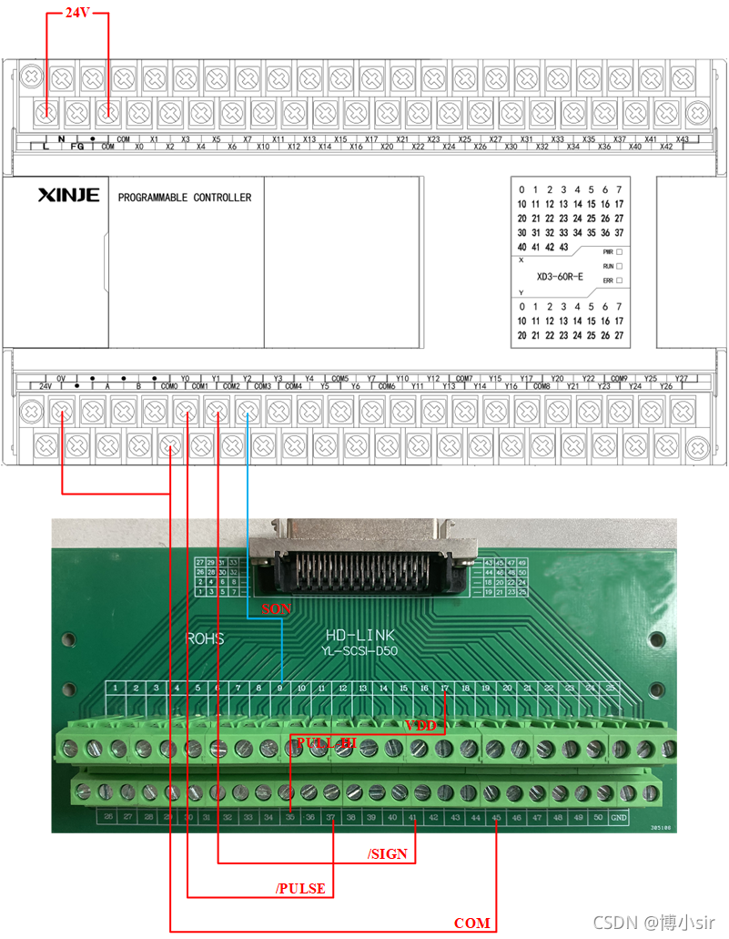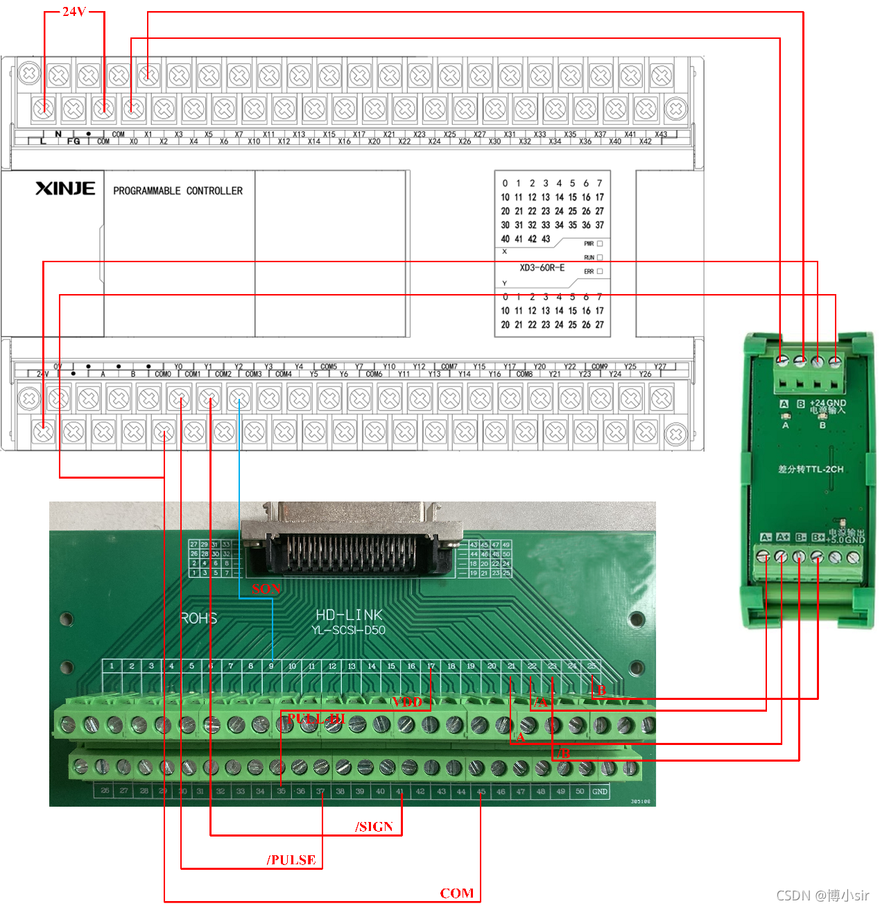 第一次在网上写博客类的东西,记录下之前使用信捷的一款PLC驱动台达脉冲伺服电机的接线方法,写在这里方便以后查看。