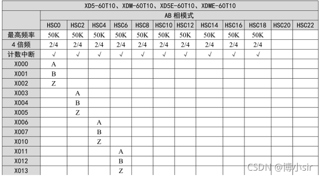 查找PLC用户手册,我们可以得到PLC的高速计数端口定义,如图11所示,本案例中,将PLC的X0和X1作为A、B两相集电极信号的输入端口,在一些精度要求很高的场合才会用到Z相信号,一般的使用场景下可以忽略。由图12可知信捷这款PLC的高速计数端口只能接受DC24V集电极开路的编码器输入。而根据图6的CN1端子的管脚定义可知台达的这款伺服驱动器只能输出A、B、Z三相差分的信号,而且经过测量,信号电压只有5V,因此不能直接作为PLC的输入信号,所以这里我们需要一个伺服差分转集电极的信号转换模块。