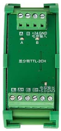 信号转换模块的作用是将5V的差分信号转换为24V的集电极开路信号,主要是通过高速光耦的电平转换来实现的。该模块同样可以在淘宝上买到,搜索建议:差分转集电极。在这里贴一张信号转换模块的实物图,附有管脚定义。