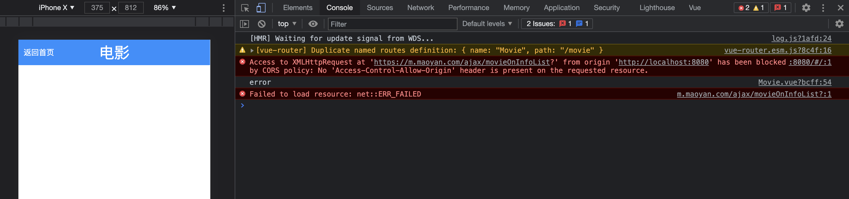当被请求url的协议、域名、端口三者之间任意一个与当前页面url不同时,即为跨域,很显然,现在当前页面的url与猫眼电影数据接口url的协议、域名、接口三者均不相同
