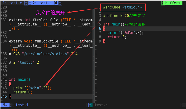 在linux下,采用gcc -E的指令将源文件进行预编译