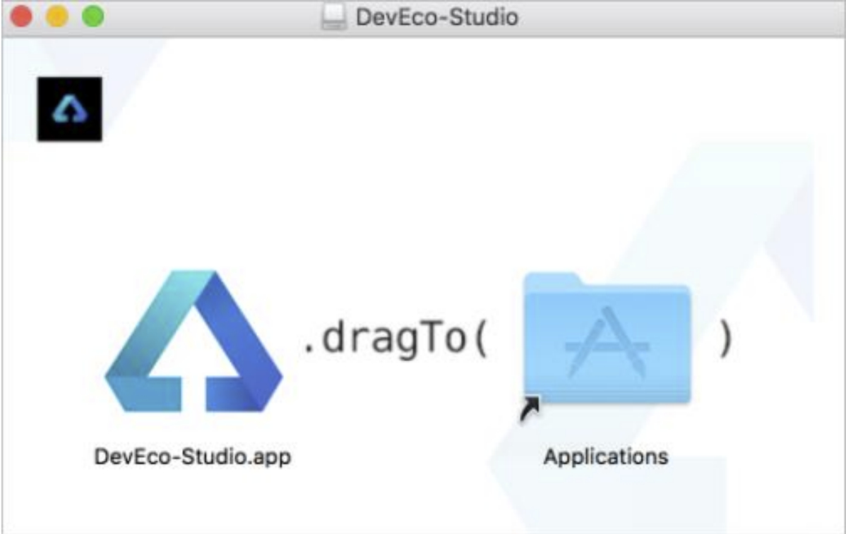 4.在安装界面中,将“DevEco-Studio.app”拖拽到“Applications”中,等待安装完成。