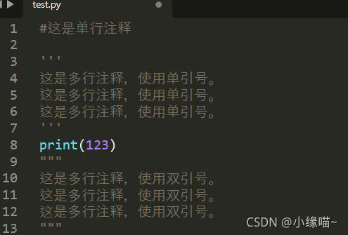 - python 中多行注释使用三个单引号(''')或三个双引号(""")
