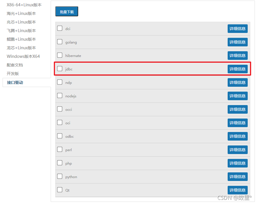 这里使用的是Java语言进行开发,所以选择JDBC接口驱动: