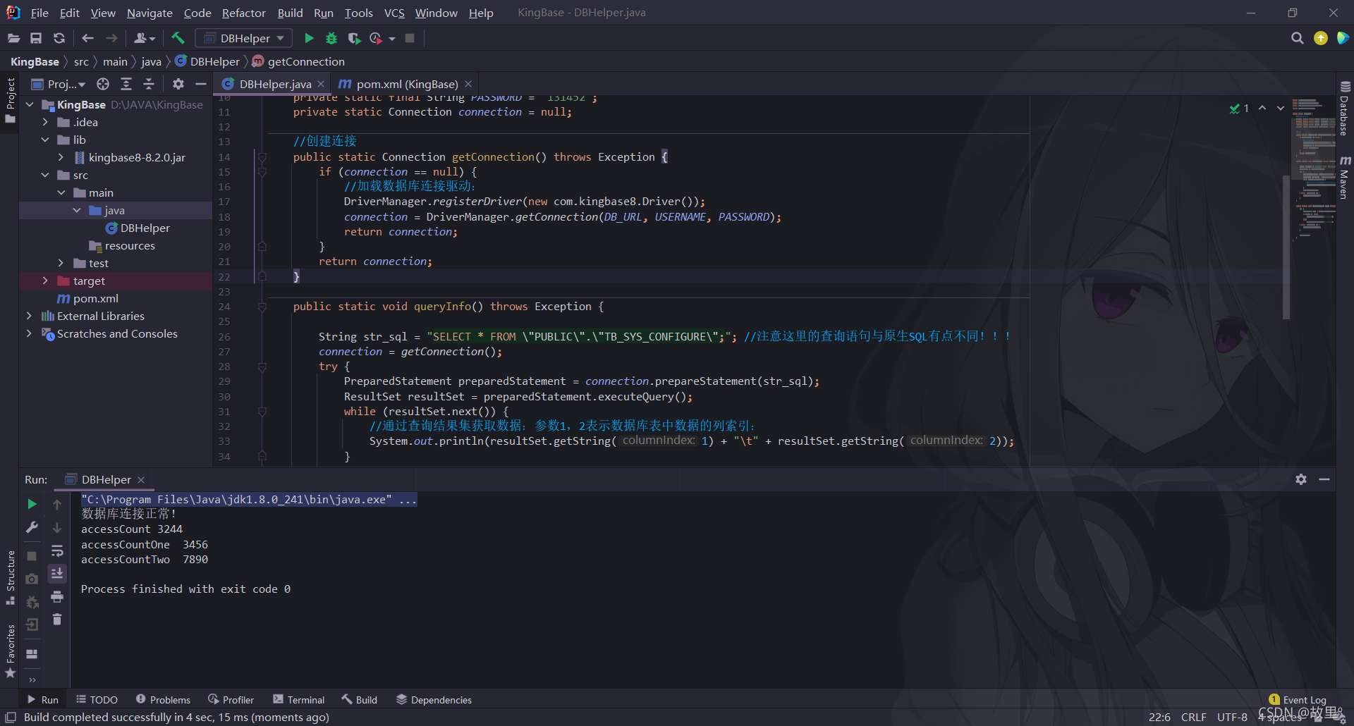 private static final String DB_URL = "jdbc:kingbase8://localhost:54321/demo?zeroDateTimeBehavior=convertToNull&useUnicode=true&characterEncoding=utf-8";