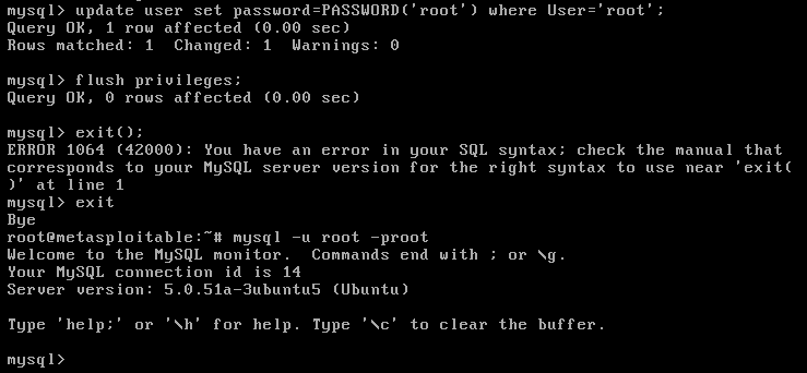 设置靶机的上mysql密码,执行shell命令:sudo mysql