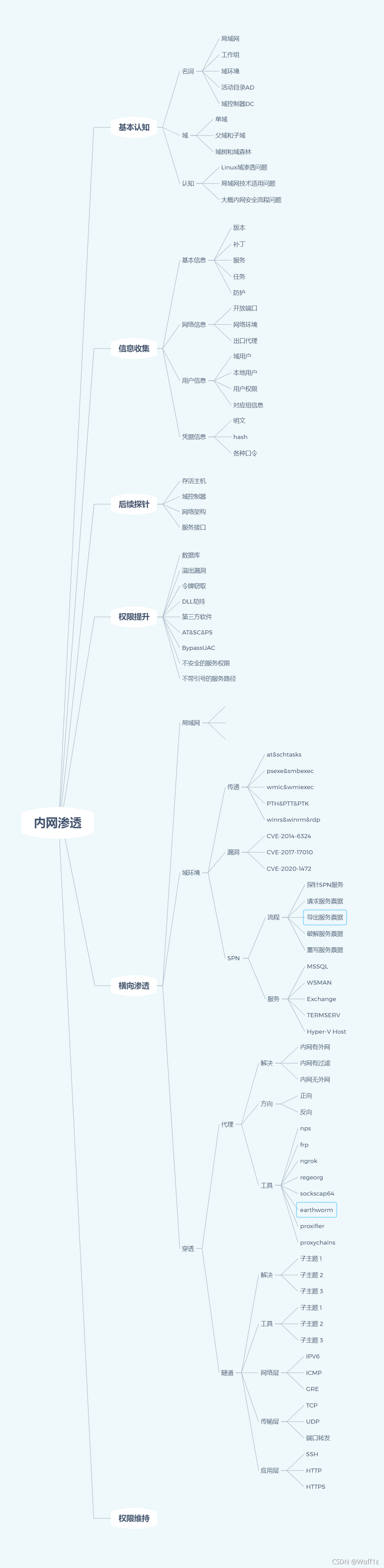 代理技术和隧道技术都属于内网穿透,代理主要解决内网里面通信的问题(比如对方在内网,你也在内网,这时候两个内网实现通信就必须要经过代理才能实现,常见工具有frp、ngrok和ew等,ew(earthworm已经停止更新了,就不演示)),和一些防火墙的拦截