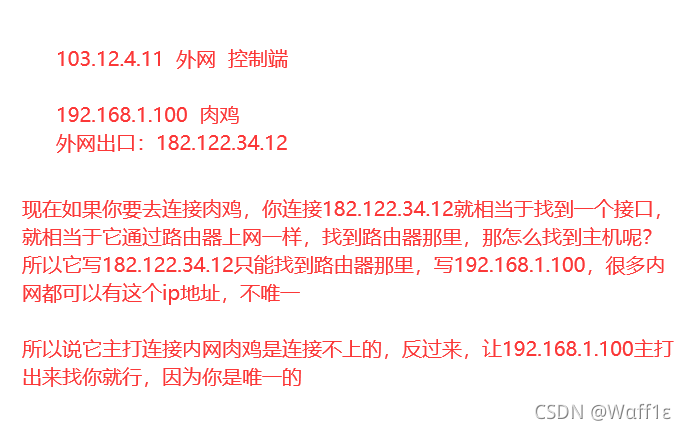 被控制的肉鸡是内网,如果你去主动找这台被控的内网主机你是找不到的,