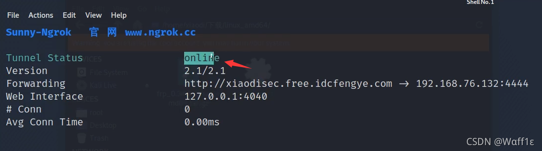 http://xiaodisec.free.idcfengye.com ——》192.168.76.132:4444(对方访问这个网址就会指向这个ip)