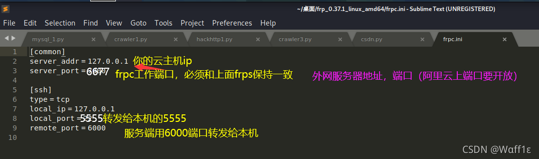 server_port = 6677 #frpc工作端口,必须和上面frps保持一致